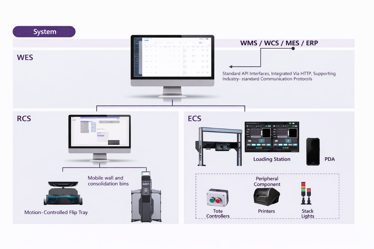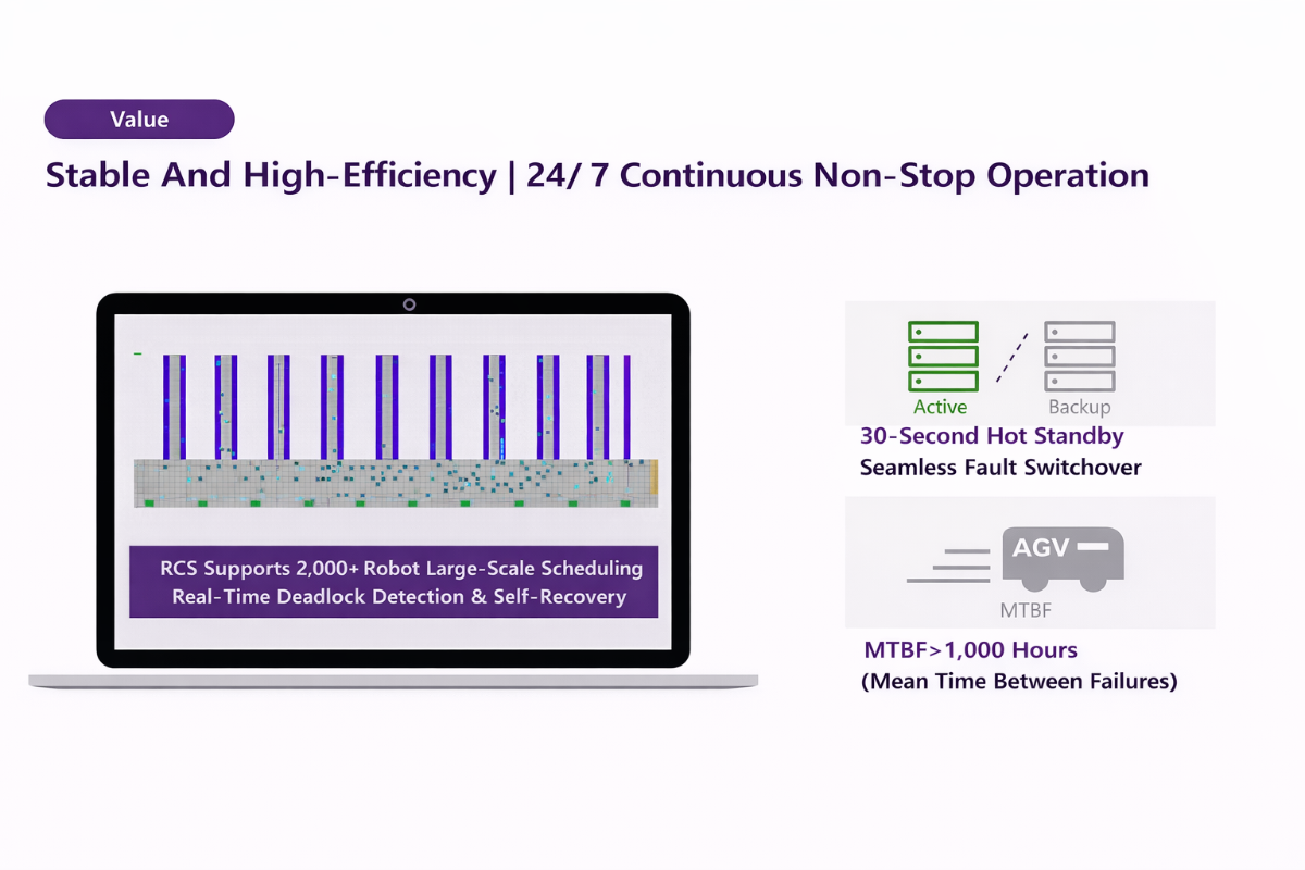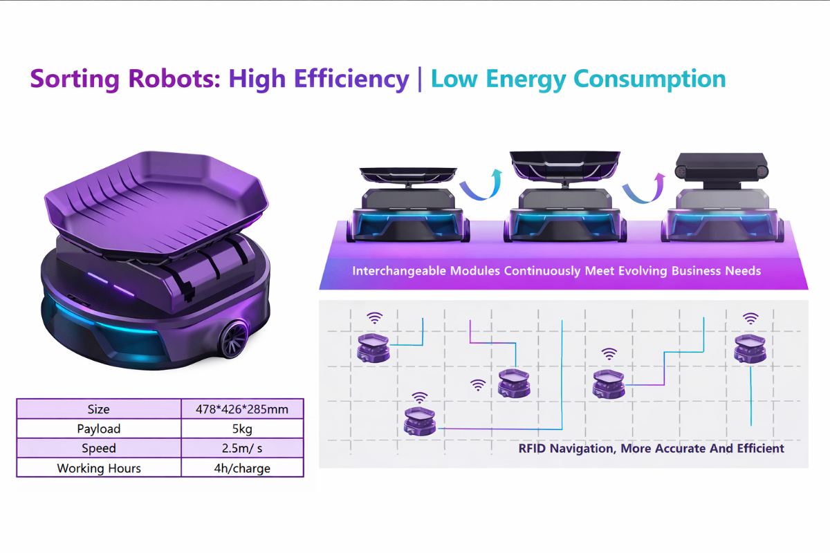 Centralized control system manages multiple AGVs, optimizing traffic flow and task distribution.