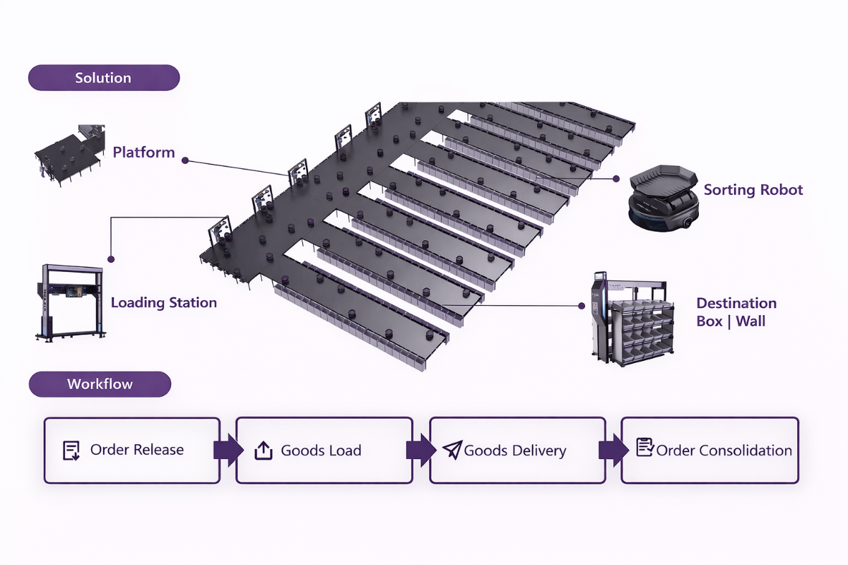 Handle high-volume order fulfillment with rapid picking and sorting for online retail operations.
